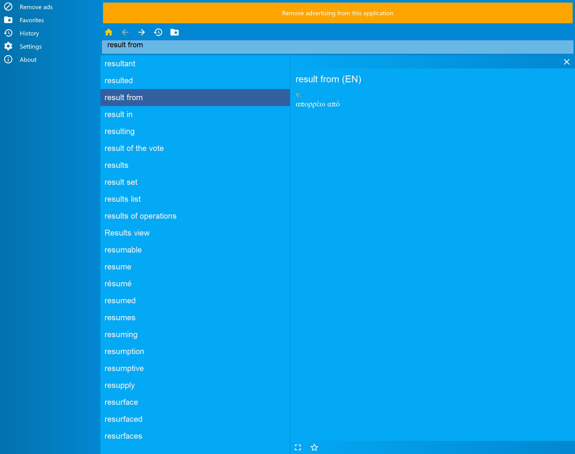 Το λεξικό λειτουργεί εκτός σύνδεσης, η αναζήτηση είναι πολύ γρήγορη.